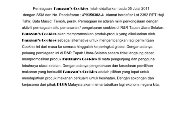 Contoh kertas kérja rancangan perniagaan 2016 vehicles 8,6/10. Snek ria food industries rancangan perniagaan. Bertanggungjawab dalam segala hal tentang masakan yang hendak disajikan kepada pelanggan. Perniagaan ini memfokuskan jenis makanan asia "asian food".
